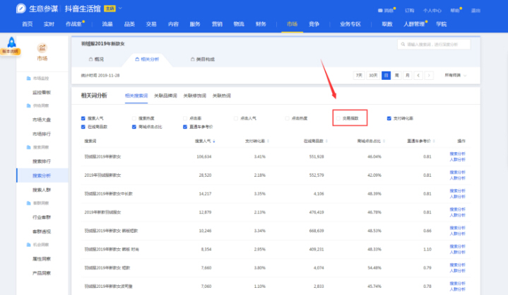 (1)在线商品数/搜索人气,约等于一个关键词的竞争度,越小越好,重点考察对象。
