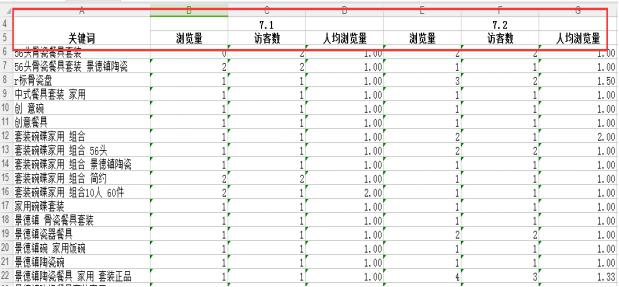 搜索餐具套装,选好日期查看我们本身餐具套装引流的数据和行业这个词的展现波动进行对比。如果同一时期都下滑了,你就可以先不维护。如果只有我们自己下滑了,那么需要从同行竞争导致转化下降去考虑。是否这个词转化下降了,点击日期,查看这个词之前的转化情况和现在的转化情况。