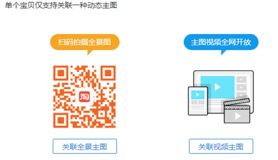 登录到淘宝神笔(链接是:xiangqing.taobao.com)之后,点击如图所示的动态主图,在动态主图显示出来的页面,在点击添加关联动态主图,注意这里会出现两个选择:一个是关联全景主图,一个是关联视频主图,我们在这里选择关联视频主图(全景主图我们在后面一个模块会讲到)。