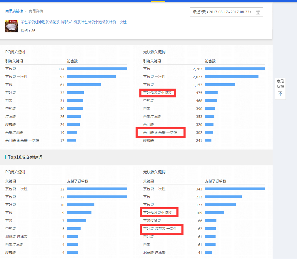 进入生意参谋,在市场行情里搜索词查询,将你的核心词输入在搜索栏的进行搜索,会显示非常多和你核心词相关的其他词,我们可以留下符合我们宝贝属性的长尾词,然后参考他的商城点击占比,在线商品数,搜索人气来寻找一些需求高,竞争低的长尾词。(2)Pc端下拉框