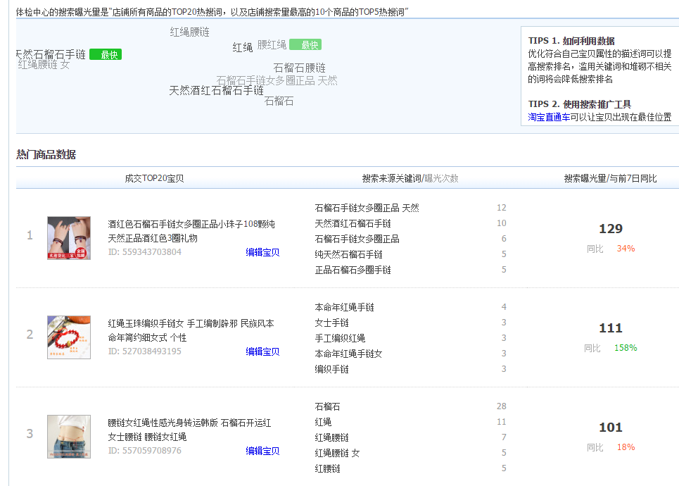 腰链女 光身这个词7日 1011搜索人气。 我们从这个词获得了较多的曝光,搜索点击,我们在这个词下的转化高于市场,但是长时间流量不再增加,这样就证明我们的引流达到了临界点,就需要优化我们的标题,突破流量瓶颈。