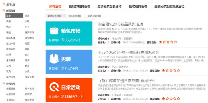 说这句话的,我想应该都是没有好好看过淘宝官方活动的,在这个官方活动里面有很多我们都没有注意过的小活动,这些小活动虽然不能像大活动那么给力,但是这些活动胜在报名门槛低、竞争少、频次高、时间长,最主要的是效果真心不错。另外,多看活动报名要求,也能及时了解不达标的原因是什么,在接下来的工作中重点攻克,下次活动开始的时候争取可以报名成功。