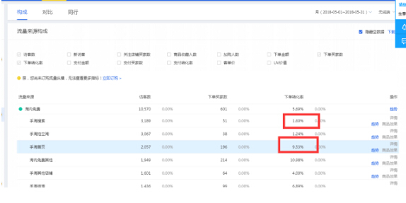 2、分析自己店内手淘搜索和手淘首页的支付转化率,以此来找到最有效的入口进攻。