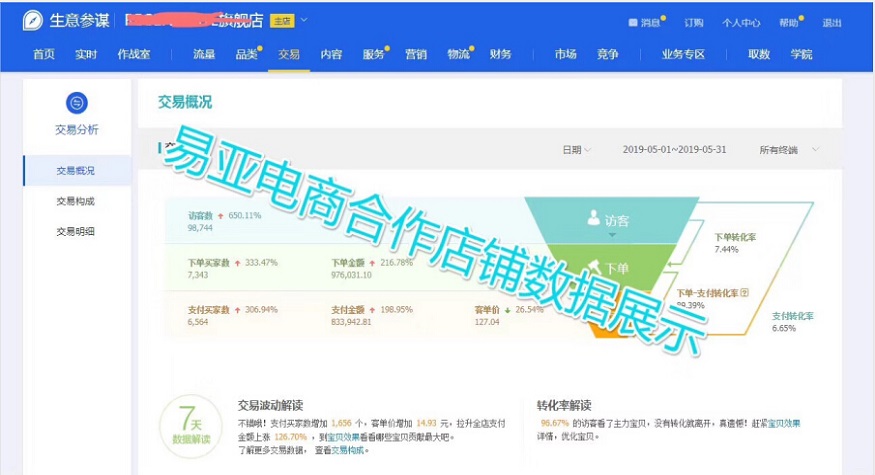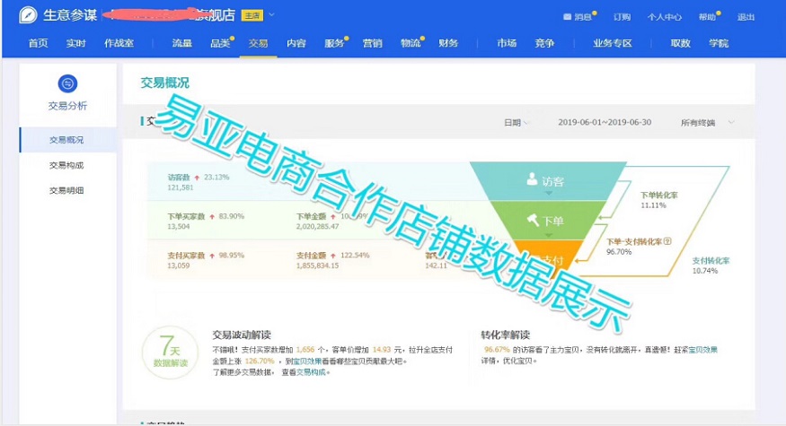 易亚电商合作三个月店铺数据展示,店铺0基础合作3个月,借势618单月完成180万➕销售额,现在日销稳定2万!天猫红利期,商家们一定把握机会,下半年爆发机会更大!